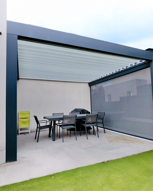 Intégré harmonieusement à la pergola, le store zip latéral améliore le confort thermique et visuel de la terrasse, sans compromettre l’esthétique de l’installation. Il s’agit d’une solution idéale pour profiter pleinement de sa pergola bioclimatique, même lors des journées venteuses ou en fin de journée.
